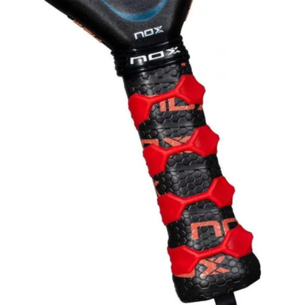 La tecnología NOX Custom Grip® (certificada por Testea Padel) y Pulse System contribuyen a la absorción de las vibraciones que llegan a la mano, reduciendo la fatiga articular. Se incluye el sistema pionero de cordón de seguridad reemplazable Smartstrap®. Más higiénico, más seguro y completamente personalizable.